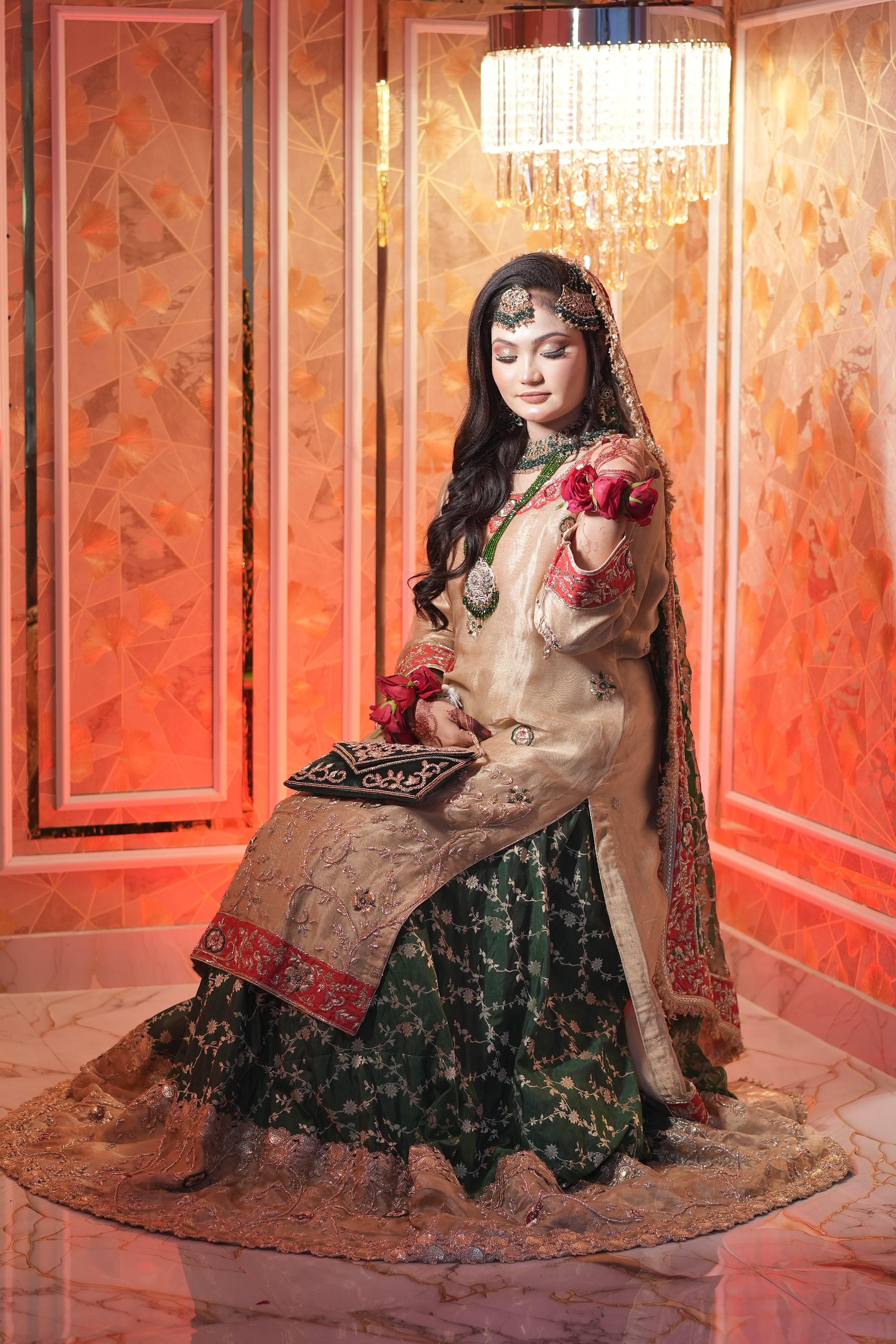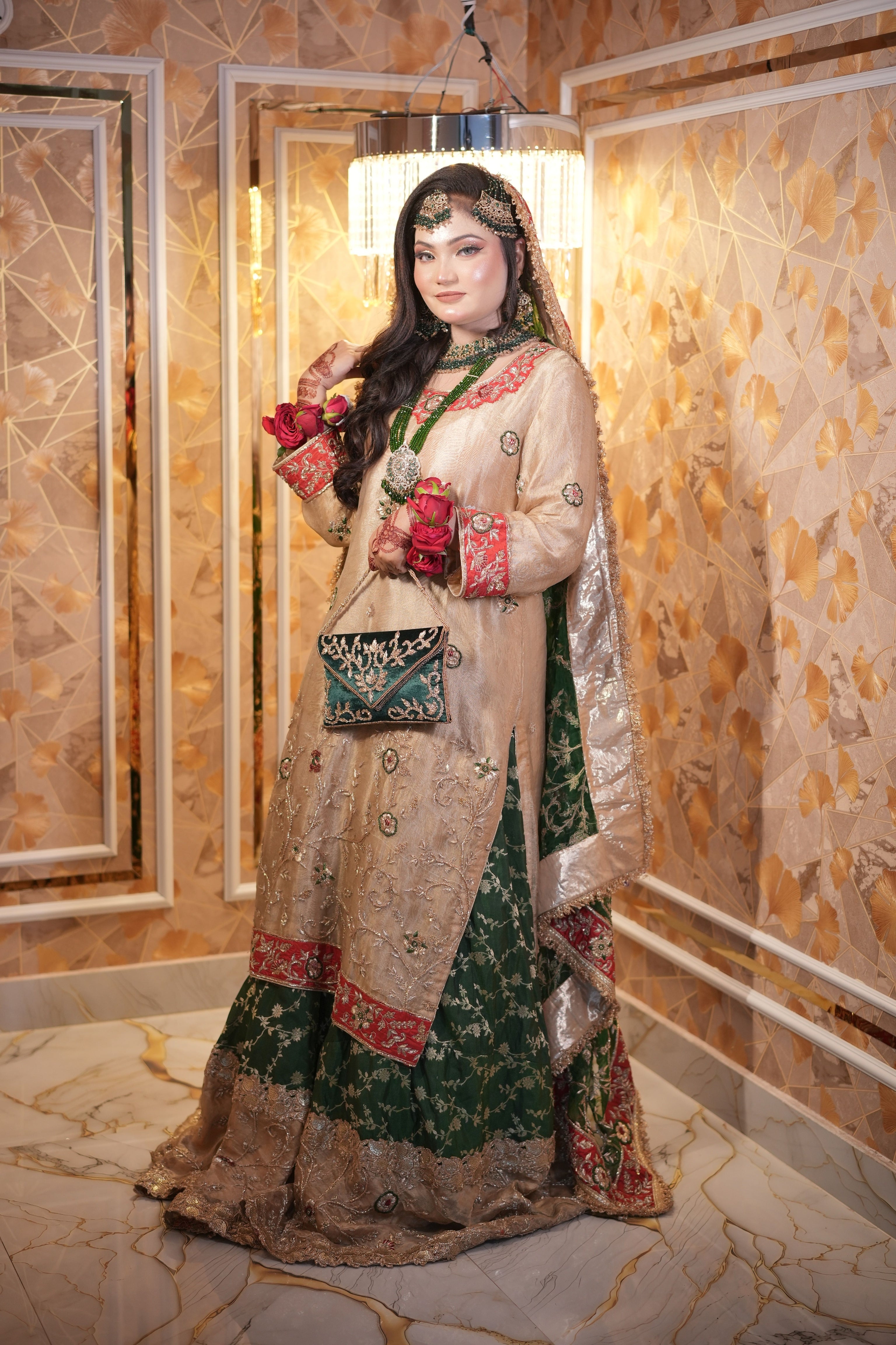👑 Royal Bridal Look – Ideal for wedding ceremonies, receptions, and special occasions.