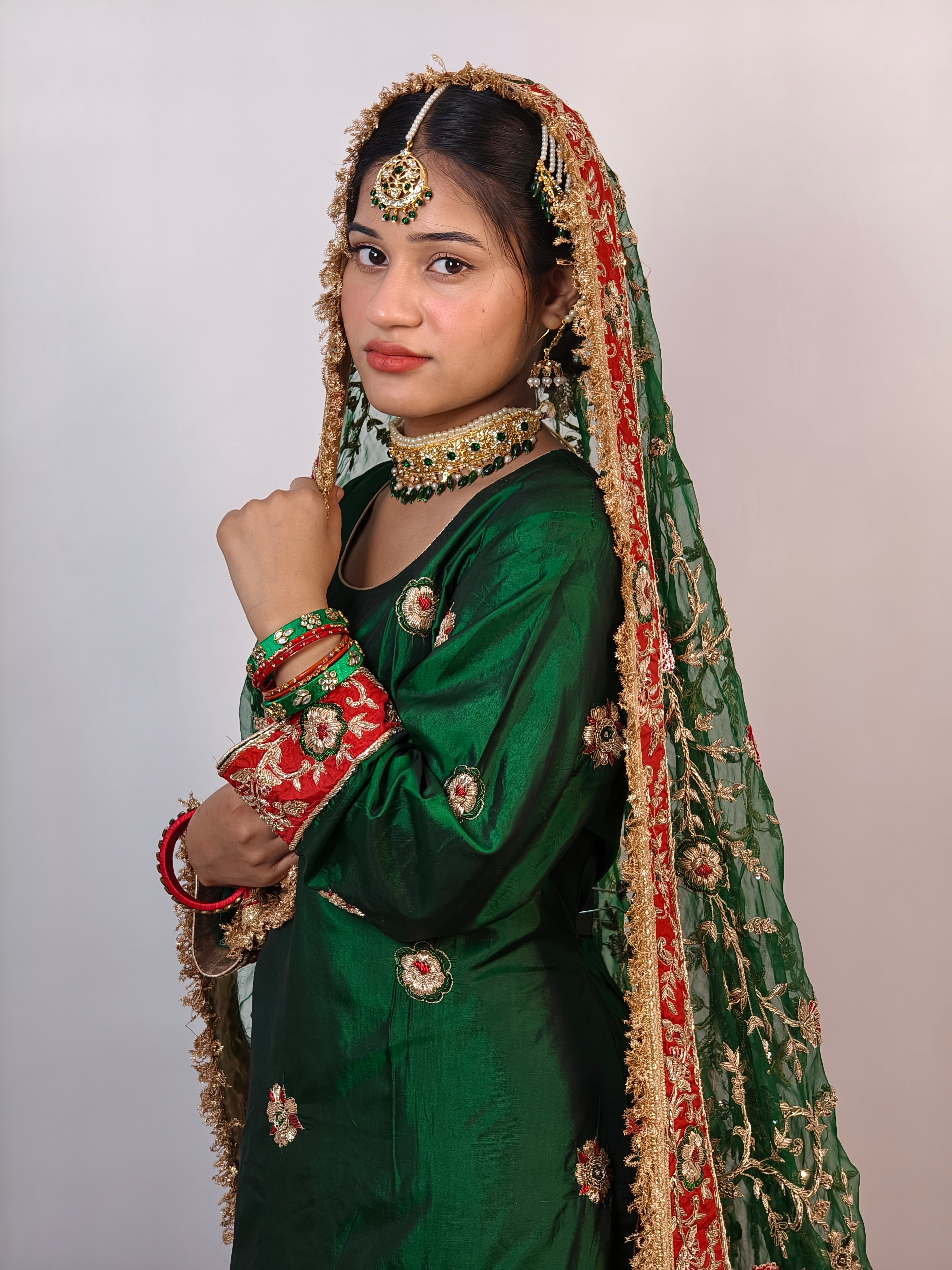 💚 Royal Emerald Green Kameez – Rich, deep shade with delicate embroidery.