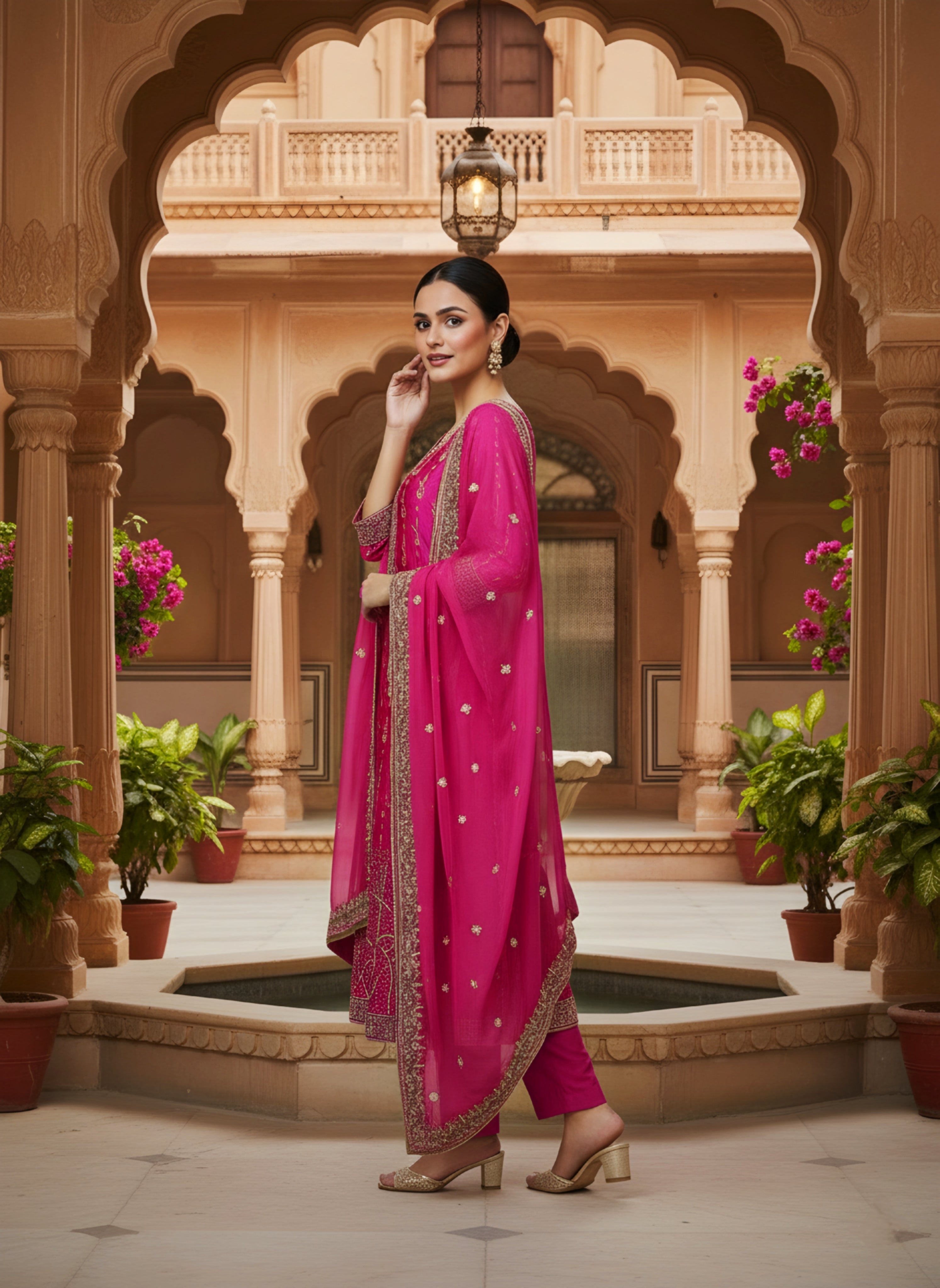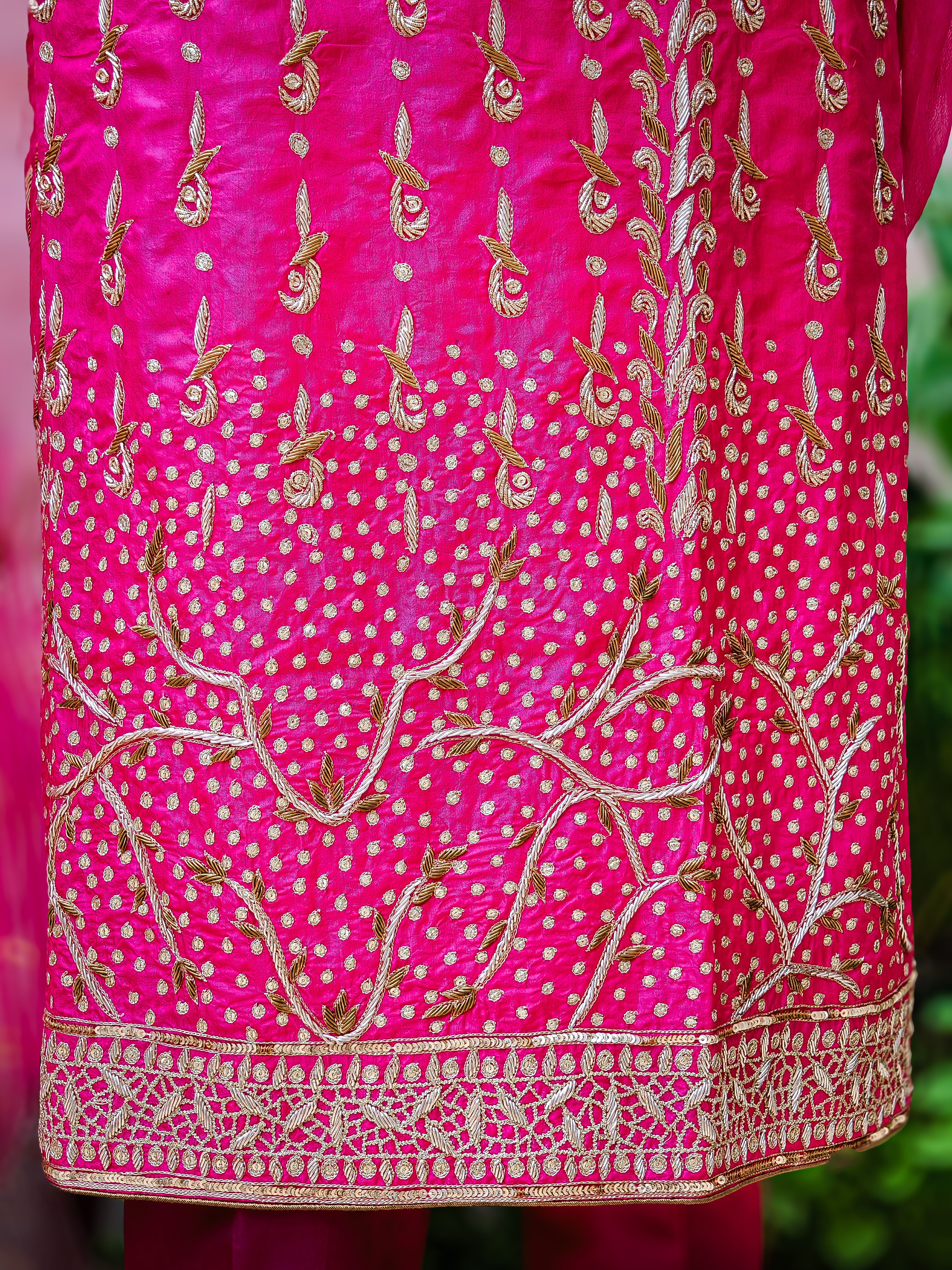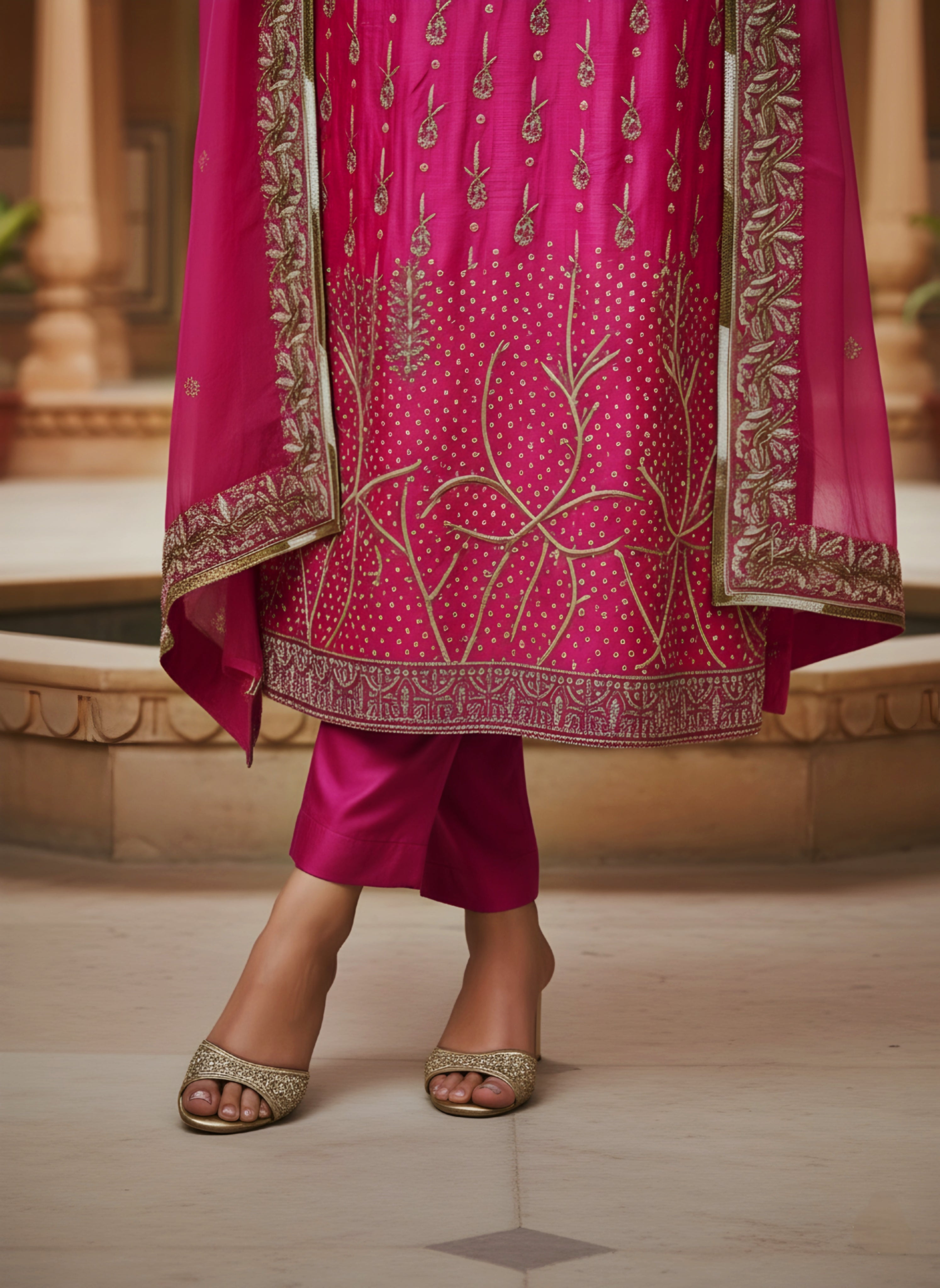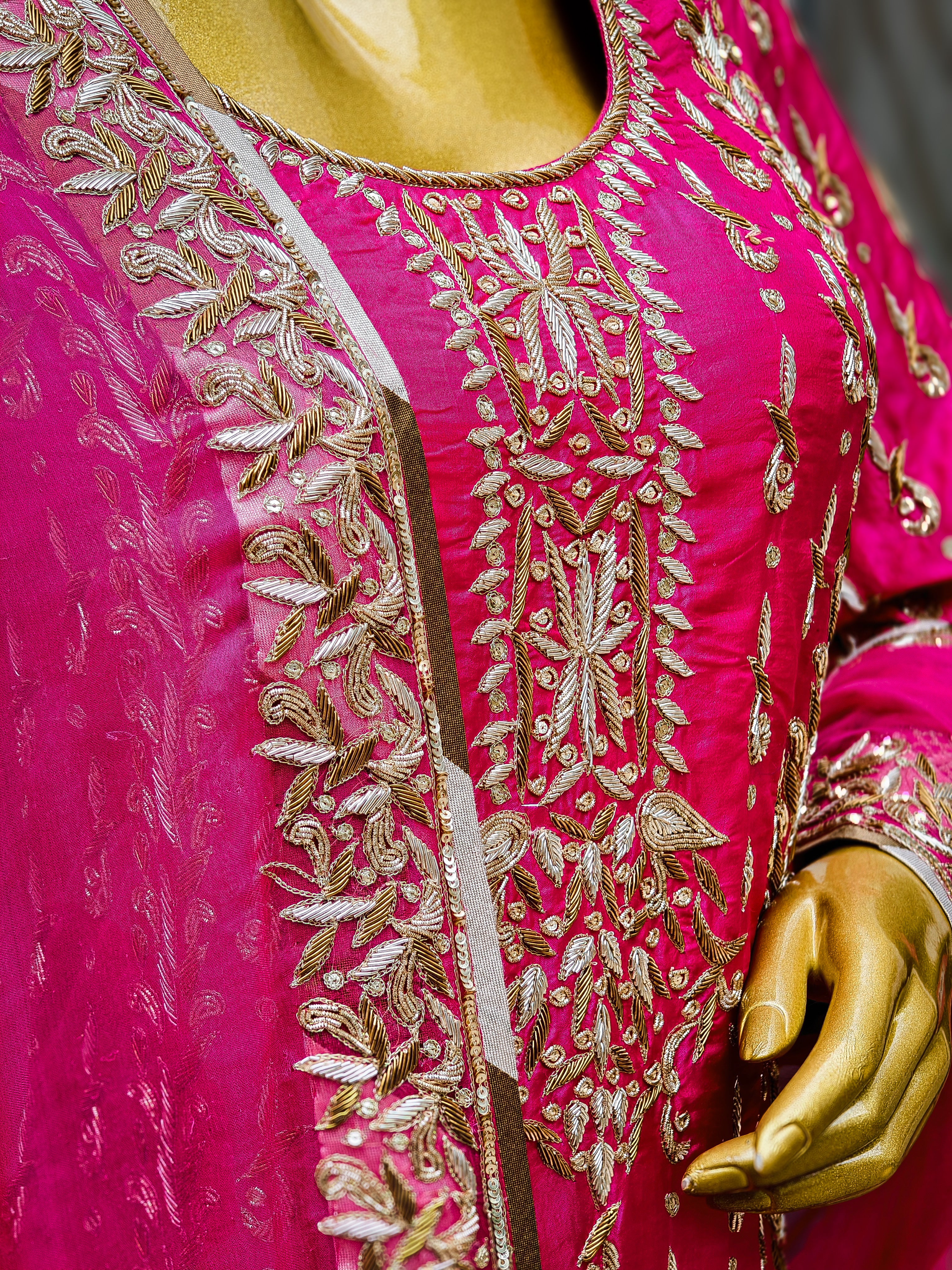 Design Name: Hot Pink Pure Silk Zardozi Suit Set