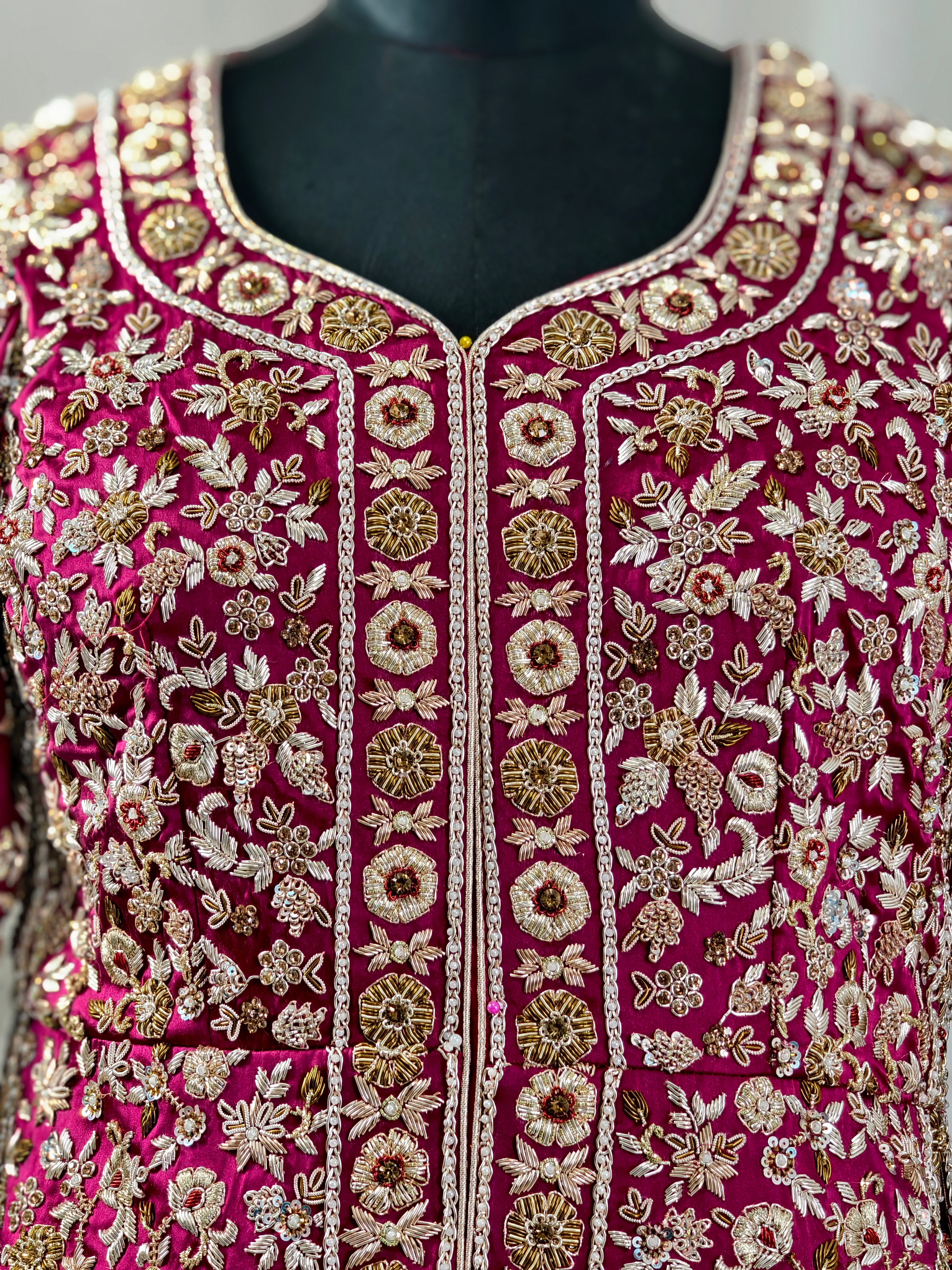 Kameez: Heavy dabka zardozi embroidery on front, sleeves & border