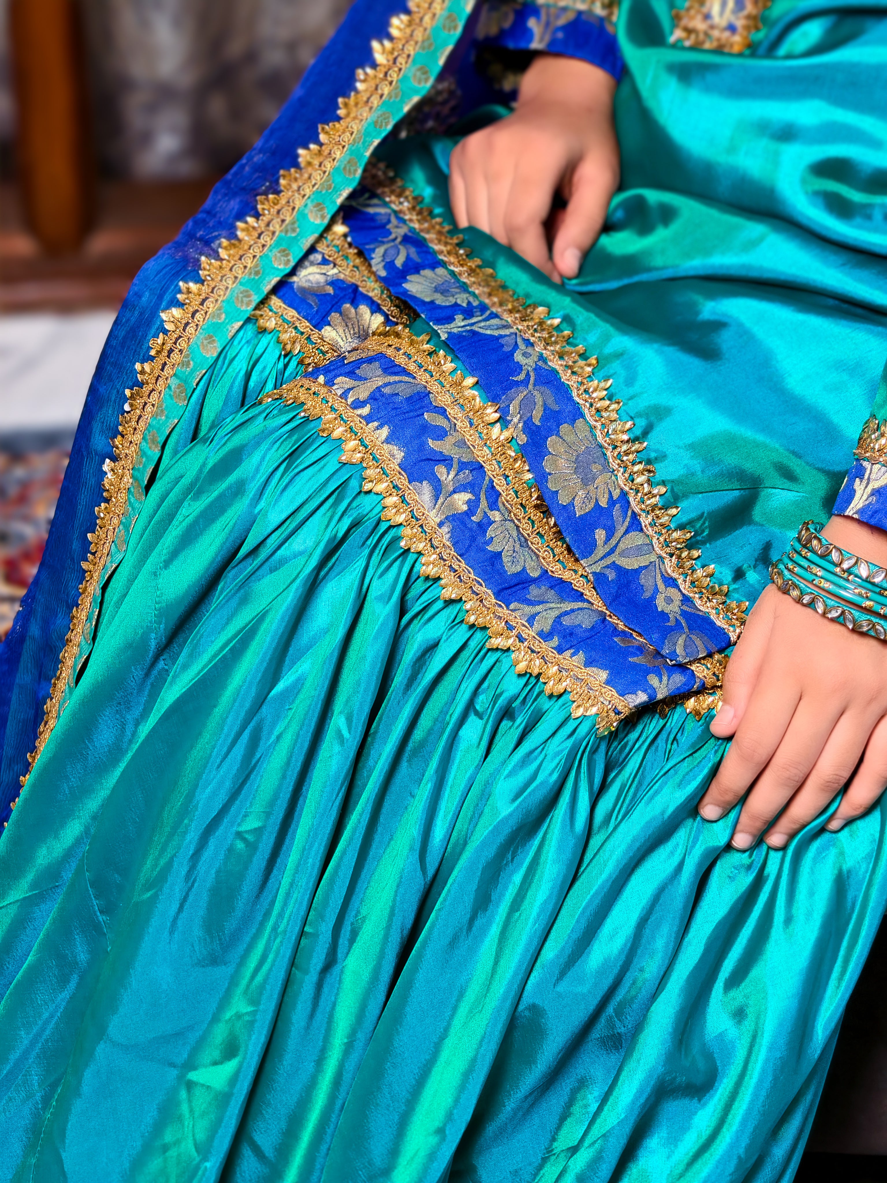 Gharara: Premium silk-blend fabric with Kundan Lace Banarsi Border.