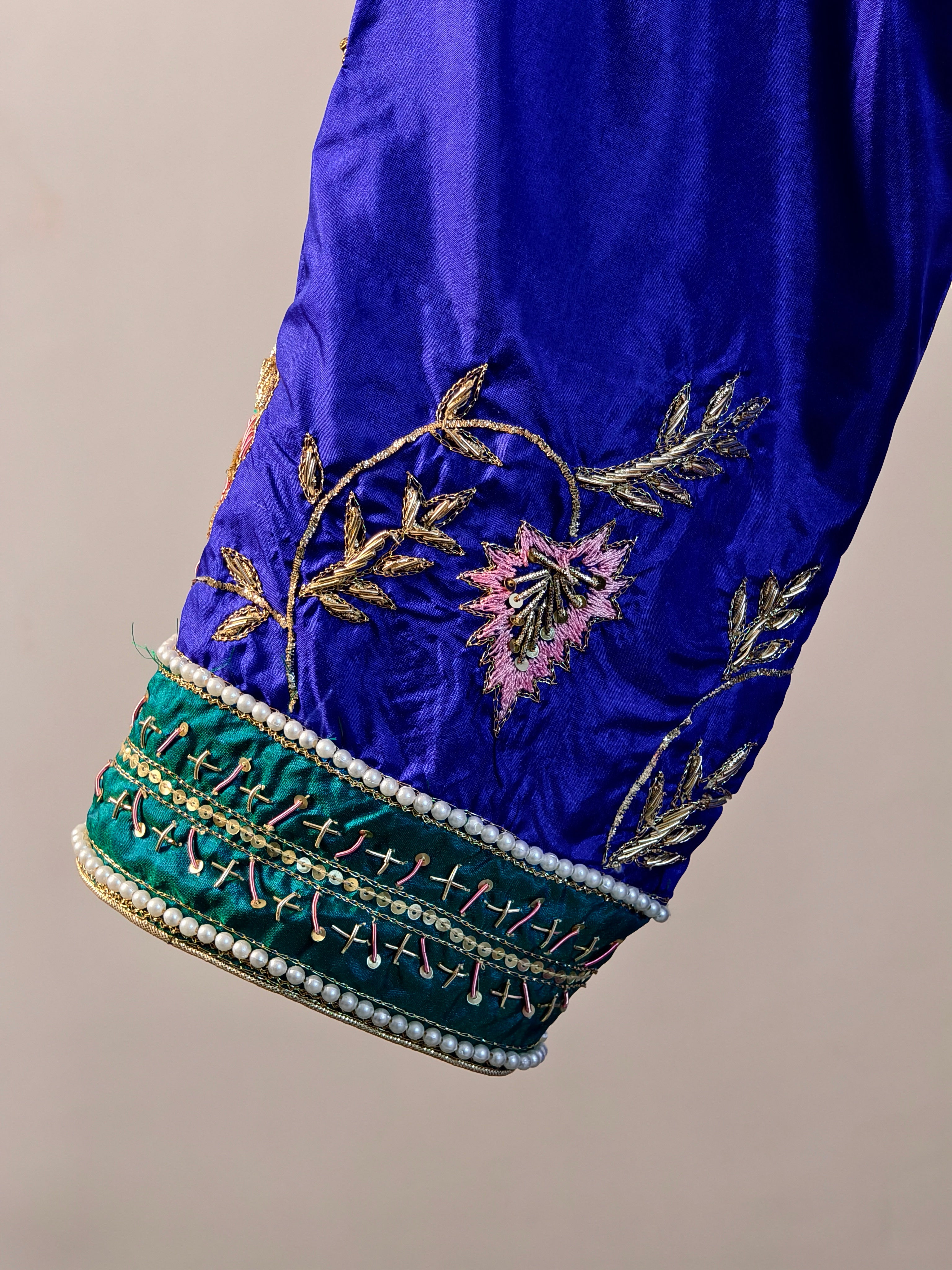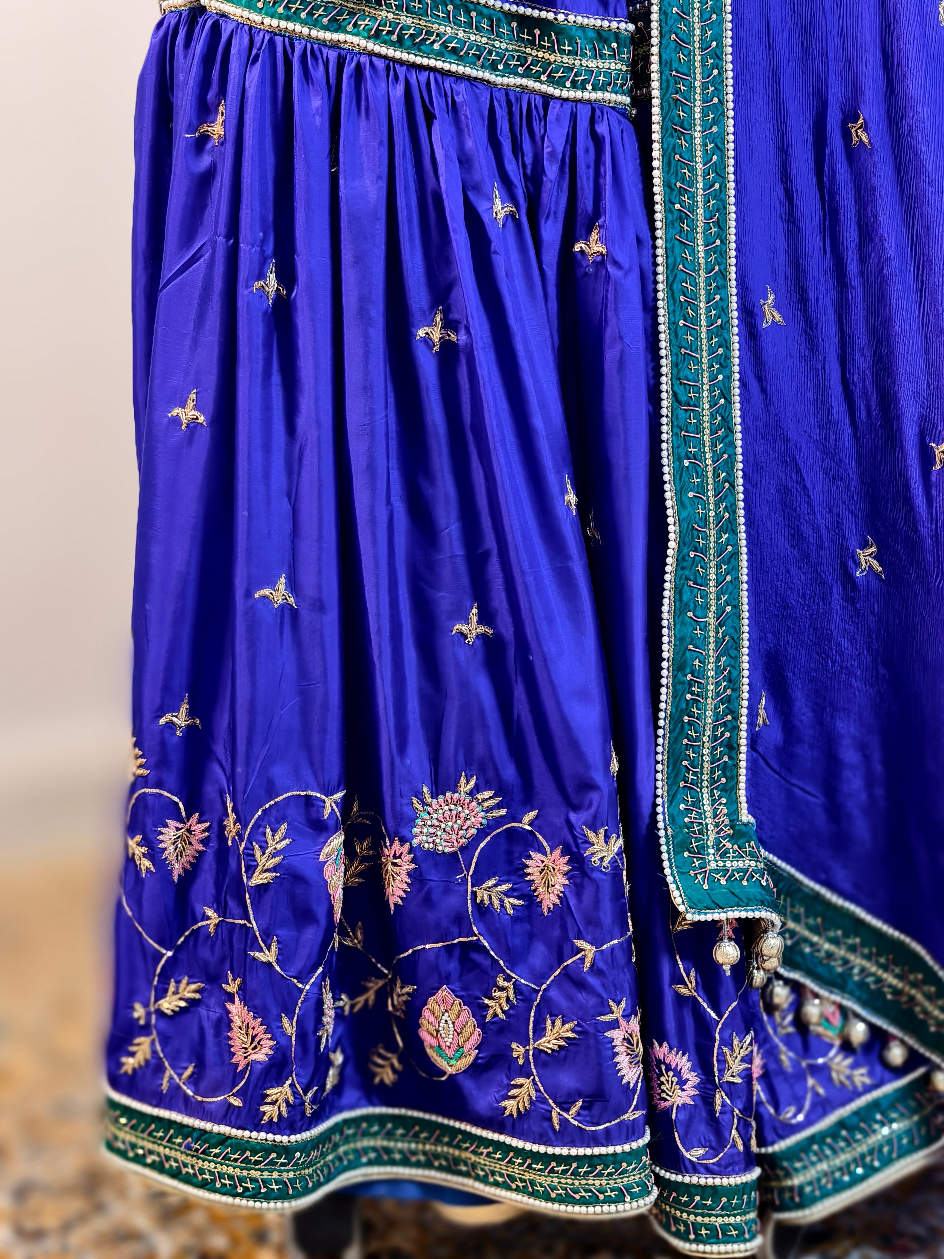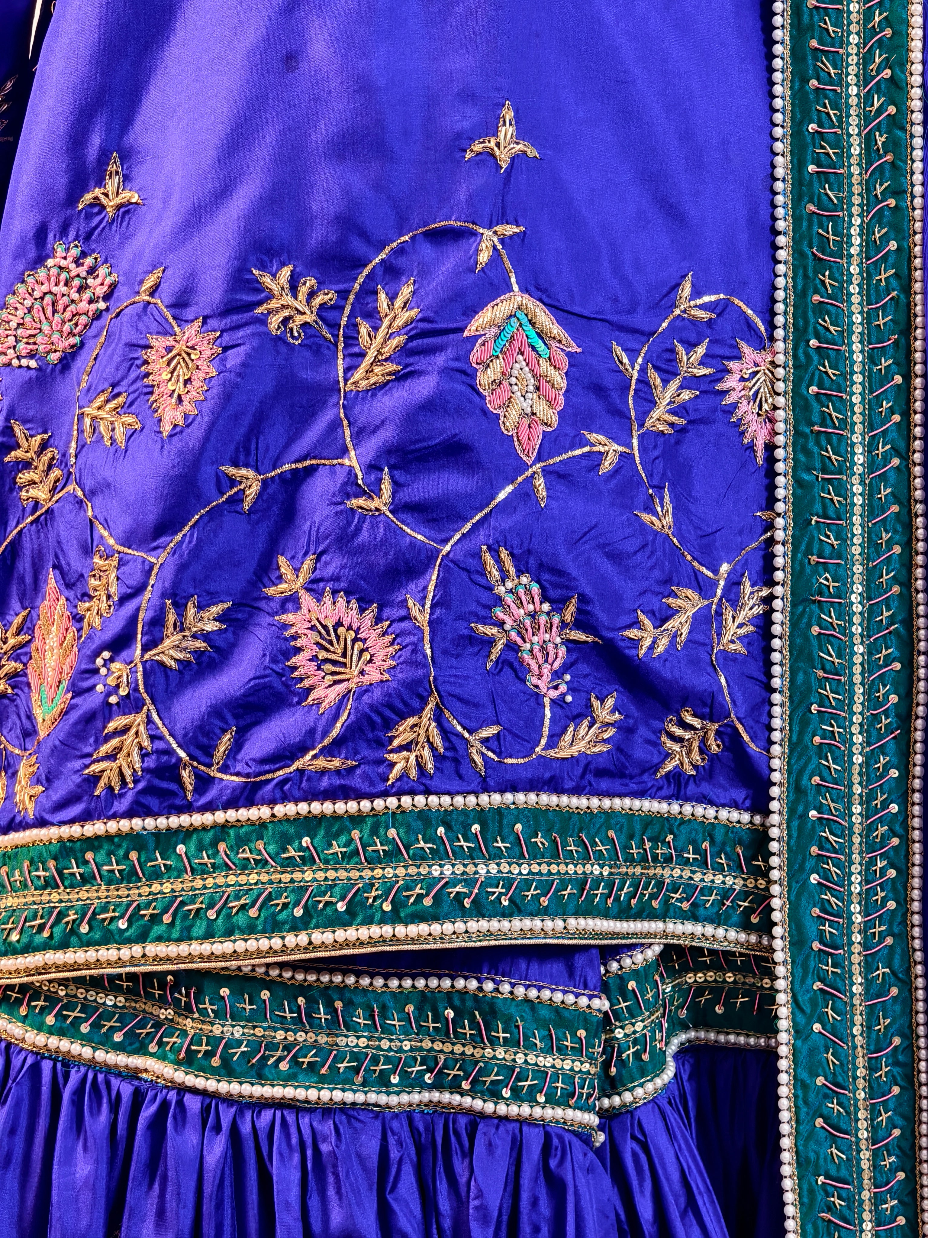 Step into the spotlight with the elegance of deep royal blue — a color that reflects confidence, royalty, and grace. This Pure Silk Gharara set is crafted for the woman who loves making every occasion unforgettable.