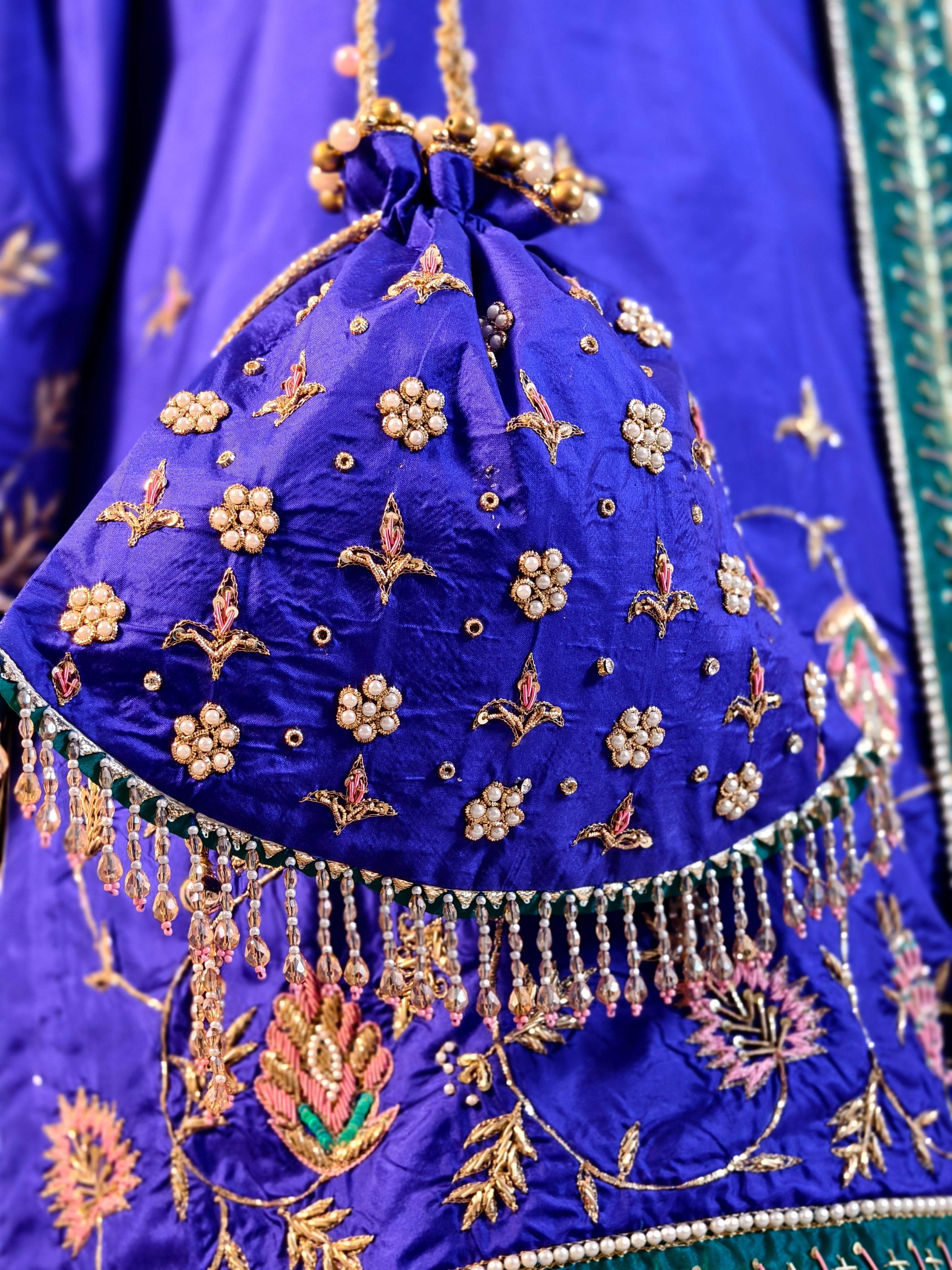 Includes: Shirt + Gharara + Matching Dupatta + Potli Bag